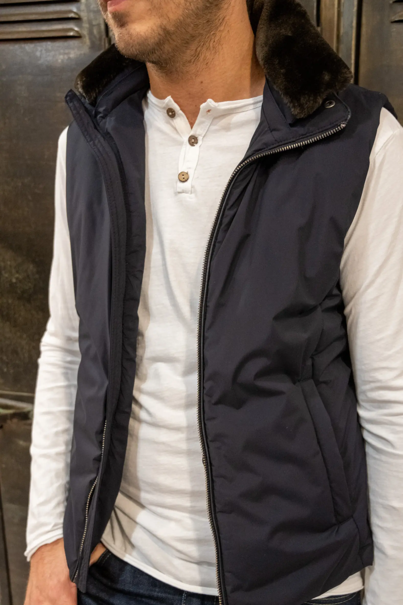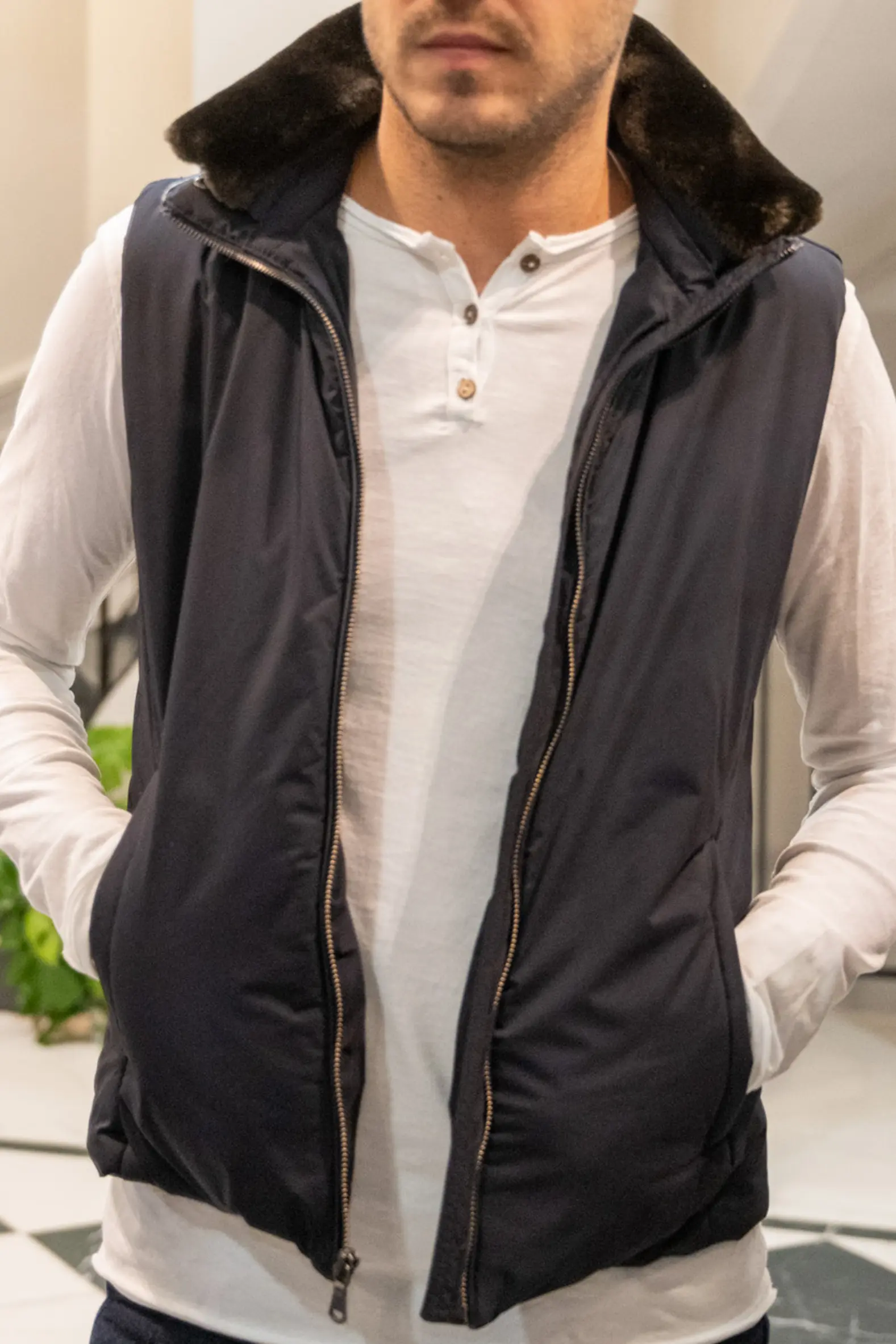 Le gilet matelassé Brody est un vêtement hyper pratique et super élégant . Les finitions sont magnifiques et son col en fourrure est amovible.
