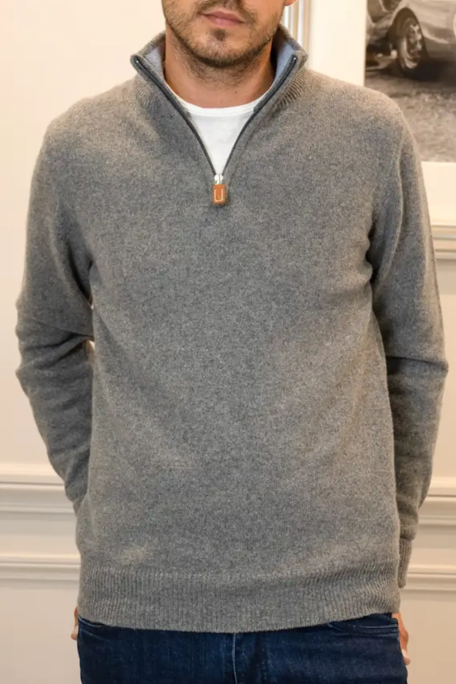 Pull zippé Guieta gris