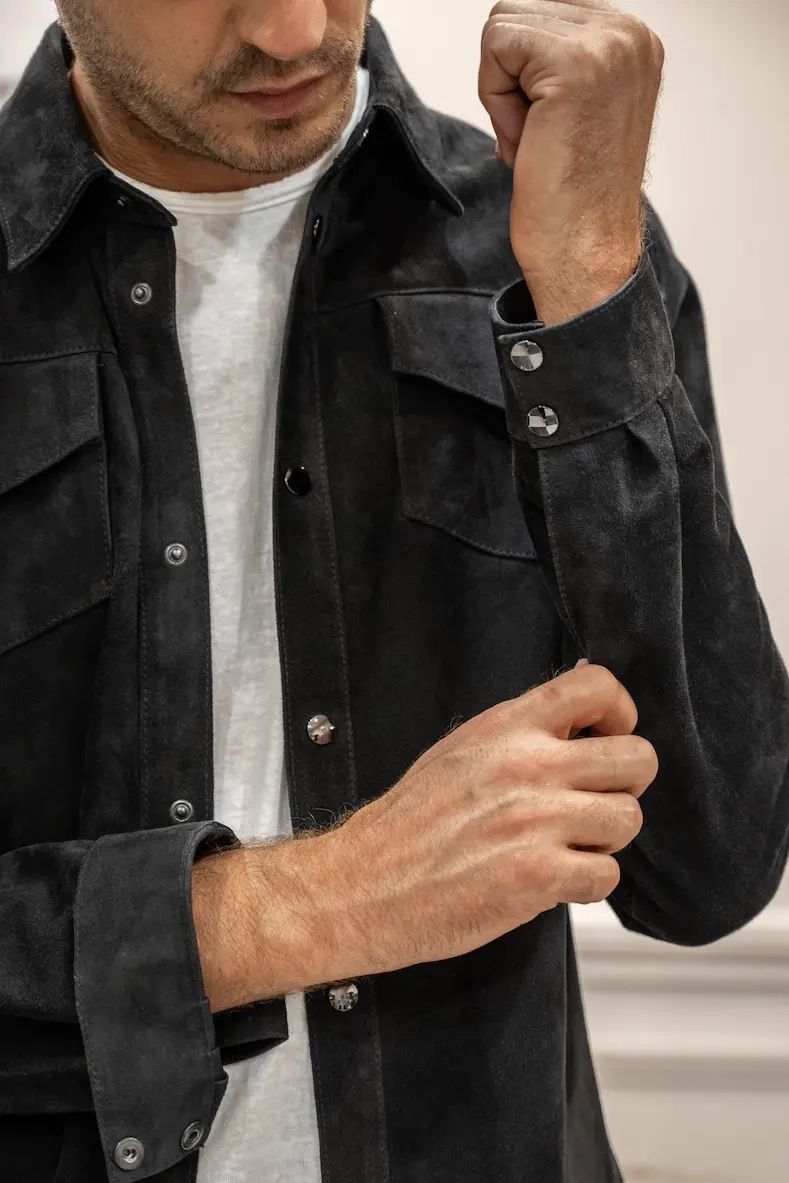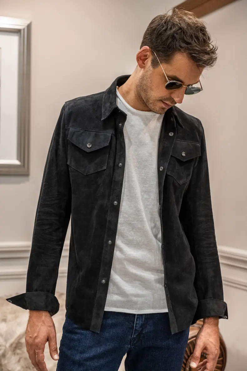 La superbe chemise Felix en nubuck d’agneau,est une pièce majeure de notre collection. Non doublée, elle convient a toute les saisons, dans un esprit sport-chic très haut de gamme .