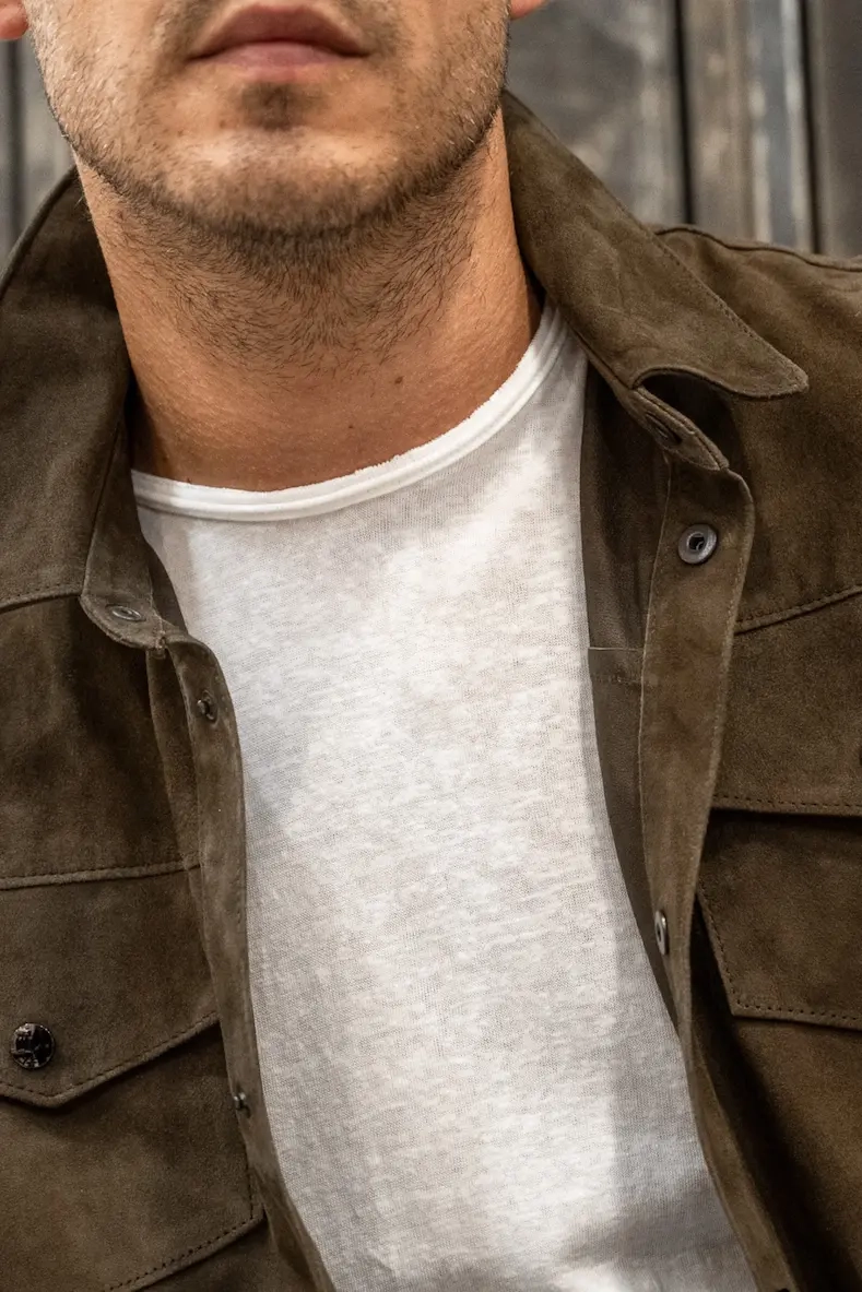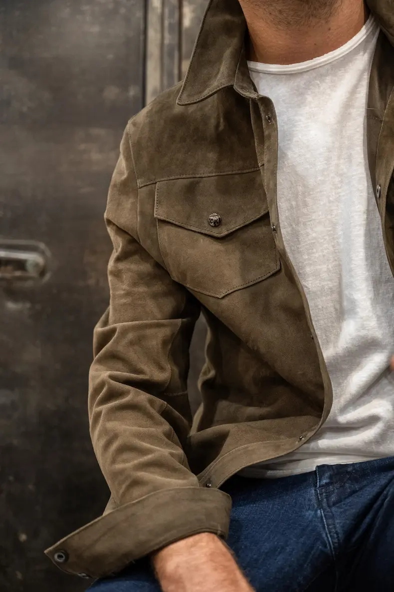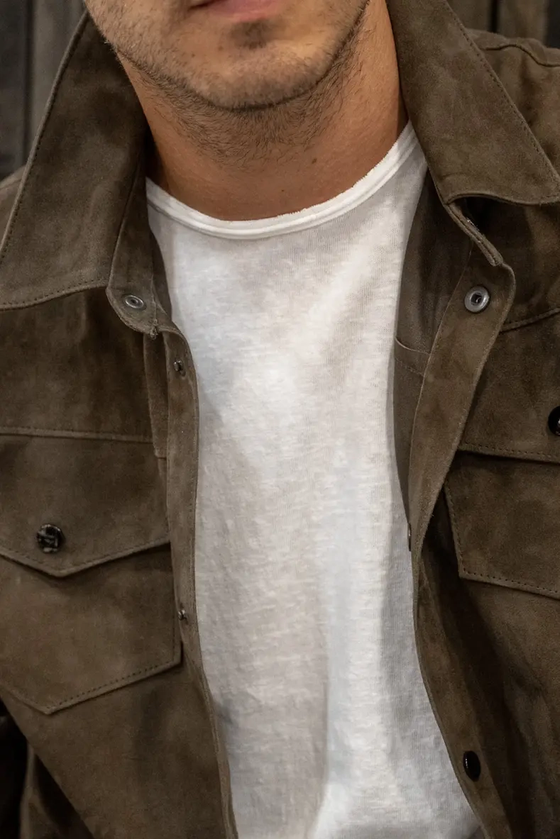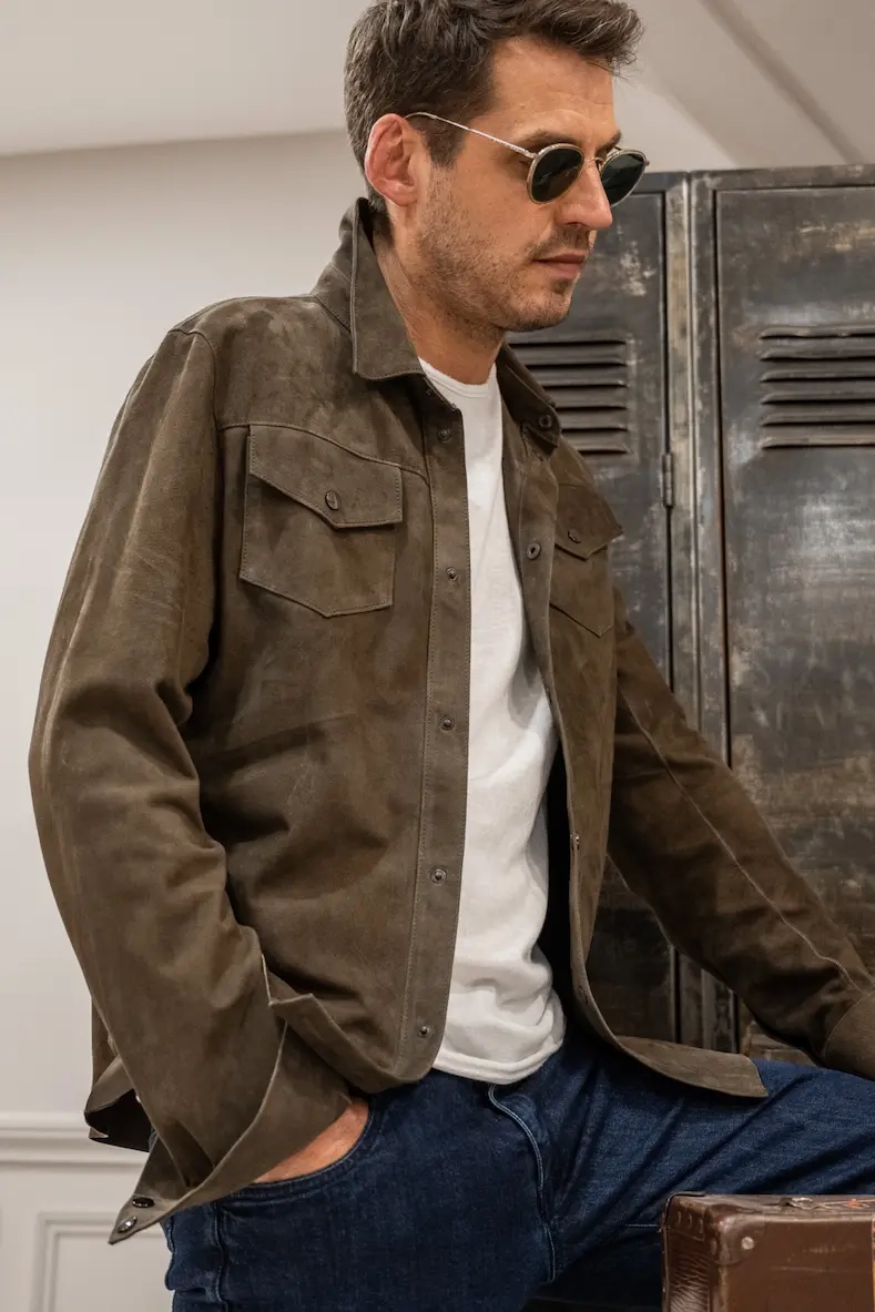 La superbe chemise Felix en nubuck d’agneau,est une pièce majeure de notre collection. Non doublée, elle convient a toute les saisons, dans un esprit sport-chic très haut de gamme .